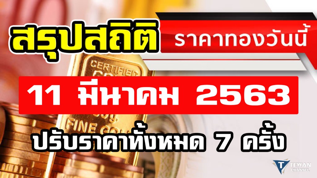 สรุปสถิติ ราคาทองวันนี้ 11มีนาคม63 ปรับราคาทั้งหมด 7 ครั้ง #TewanChannel #ราคาทองคําวันนี้ #ราคาทองคำวันนี้ #สถานการณ์ทองคำวันนี้ #ราคาทองคำวันนี้ล่าสุด63 #ราคาทองรูปพรรณวันนี้ #ราคาทองคำแท่งวันนี้ #ราคาทองคําแท่ง #ทองรูปพรรณ #ทองครึ่งสลึง #ราคาทองฮั่วเซ่งเฮง #ราคาทองจินฮั้วเฮง #ราคาทองแม่ทองใบ #ราคาทองแม่ทองสุก #ราคาทองออโรร่า #ทองคำแท่ง