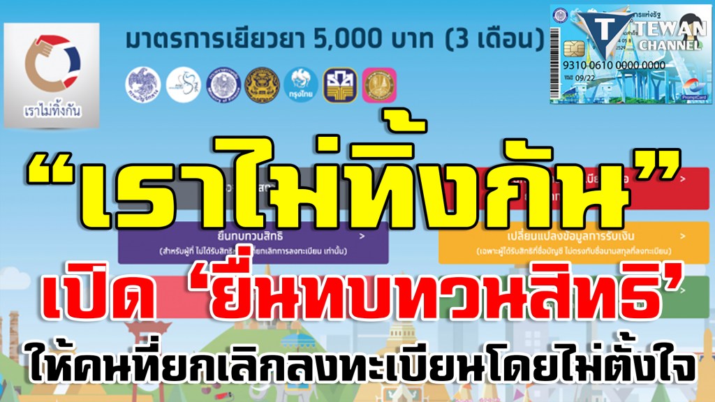 ราไม่ทิ้งกัน 5000 “เปิด ยื่นทบทวนสิทธิ์” ให้คนที่ยกเลิกลงทะเบียนโดยไม่ตั้งใจ ยืนยันด่วน “เราไม่ทิ้งกัน” เปิดเมนูสีม่วงให้ “ยื่นทวบทวนสิทธิ” สำหรับคนที่กดยกเลิกลงทะเบียนโดยไม่ได้ตั้งใจ #เราไม่ทิ้งกัน, #ลงทะเบียนเราไม่ทิ้งกัน, #ยื่นทบทวนสิทธิ์ #ลงทะเบียนรับเงิน 5000, #www.เราไม่ทิ้งกัน.com, #วิธีรับเงิน5000, #เงินเยียวยา 5000 บาท, #โควิด-19