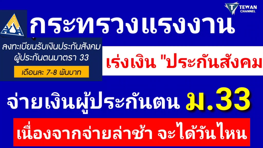 ผู้ประกันตน มาตรา33 ยังไม่ได้เงินชดเชย7000-8000 “ประกันสังคม” กรมแรงงานกล่าว บริษัทไม่นำส่งเรื่อง เร่งจ่ายเงินผู้ประกันตน มาตรา33 ยังไม่ได้เงินชดเชย “ประกันสังคม” กรมแรงงานกล่าว บริษัทไม่นำส่งเรื่อง หยุดงานของผู้ประกันตน #เงินเยียวยาประกันสังคมมาตรา33 #เงินชดเชยรายได้ประกันสังคมได้วันไหน #เงินเยียวยาคนตกงานประกันสังคม #มาตรา33 #ประกันสังคม #กรมแรงงาน #เงินเยียวยาประกันสังคมได้วันไหน