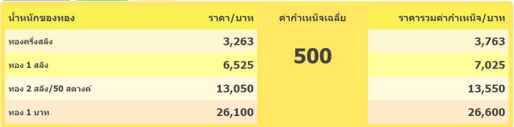 ราคาทองรูปพรรณ รวมค่ากำเหน็จเฉลี่ย