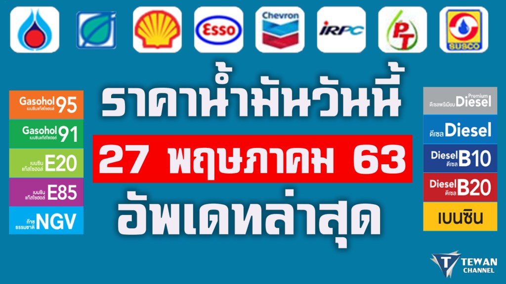 ราคาน้ำมันวันนี้ 27/5/63 ราคาน้ำมันวันที่ 275พฤษภาคม63 ราคาน้ำมันล่าสุด ราคาน้ำมันวันนี้27/5/63 #ราคาน้ำมันวันนี้ #ราคาน้ำมันล่าสุด #อัพเดทราคาน้ำมัน #TewanChannel