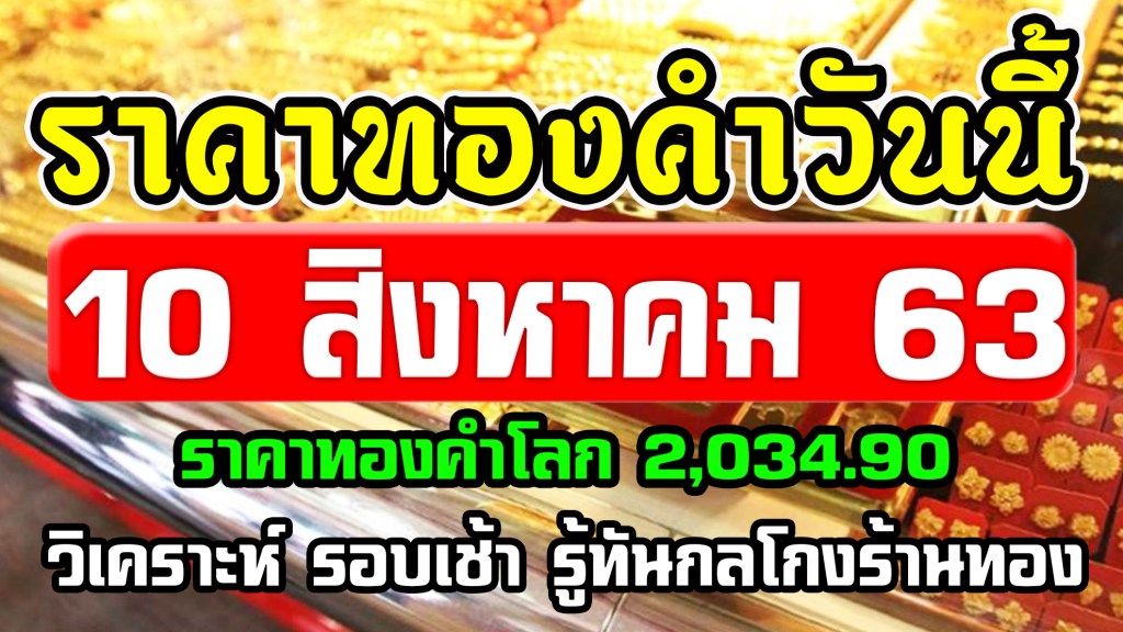 ราคาทองคำวันนี้ 10/8/63 ราคาทองวันที่ 10สิงหาคม63 ราคาทองคำ ล่าสุด ทองคำแท่ง ทองรูปพรรณ