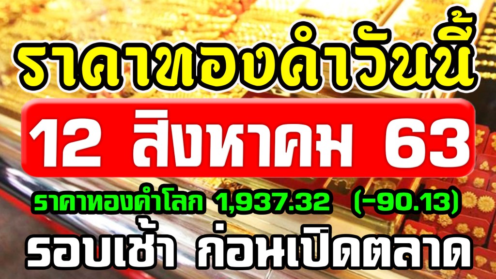 ราคาทองคำวันนี้ 12/8/63 ราคาทองวันที่ 12สิงหาคม63 ราคาทองคำ ล่าสุด ทองคำแท่ง ทองรูปพรรณ