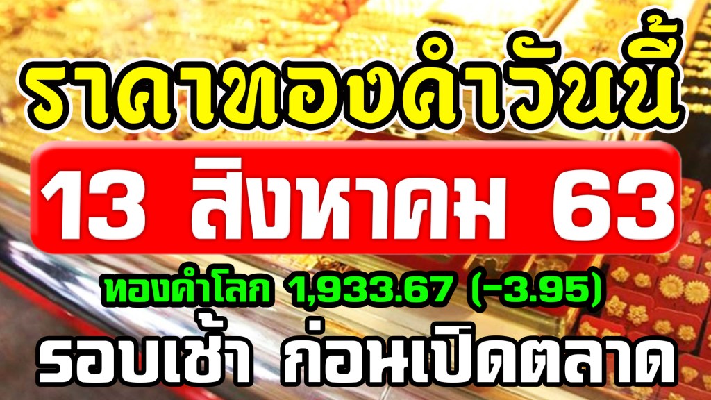 ราคาทองคำวันนี้ 13/8/63 ราคาทองวันที่ 13สิงหาคม63 ราคาทองวันนี้ ล่าสุด ทองคำแท่ง ทองรูปพรรณ