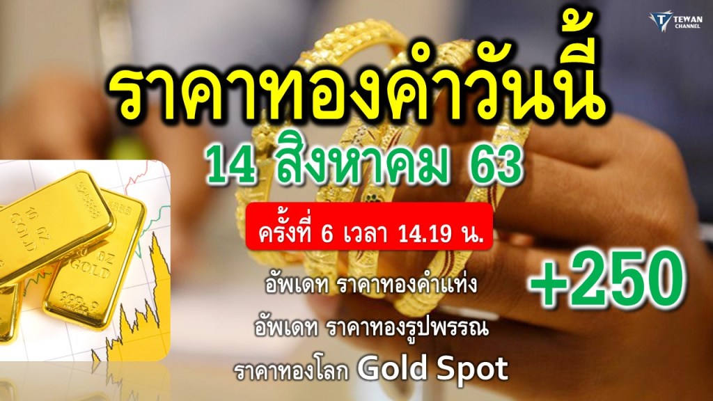 ราคาทองวันนี้ 14สิงหาคม63 ราคาทองคำวันนี้ 14/8/63 ปรับราคา ครั้งที่6 เวลา14.19น. พุ่ง 250 บาท