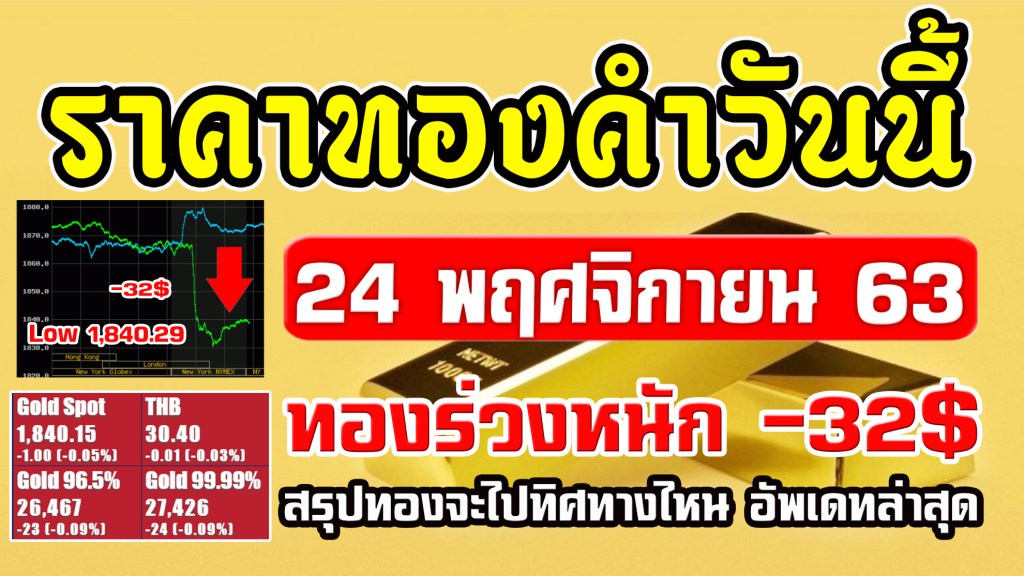 ราคาทองคำวันนี้ 24/11/63 ราคาทองวันนี้ 24พฤศจิกายน63 ราคาทองล่าสุด วิเคราะห์ทอง ทองร่วงแรง 32เหรียญ