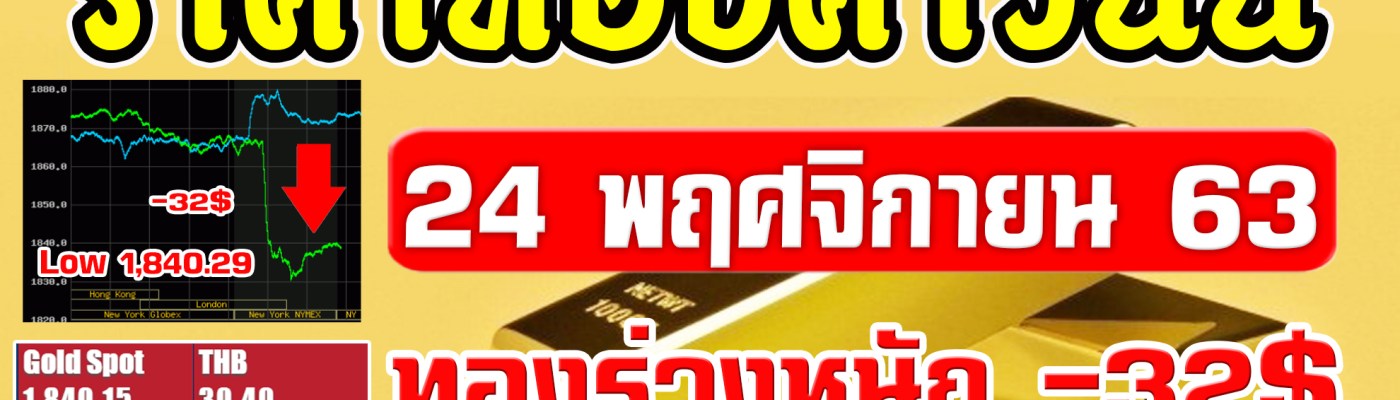 ราคาทองคำวันนี้ 24/11/63 ราคาทองวันนี้ 24พฤศจิกายน63 ราคาทองล่าสุด วิเคราะห์ทอง ทองร่วงแรง 32เหรียญ
