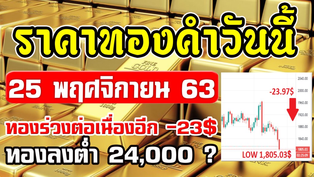 ราคาทองคำวันนี้ 25/11/63 ราคาทองวันนี้ 25พฤศจิกายน63 ราคาทองล่าสุด วิเคราะห์ทอง ทองร่วงอีก 23เหรียญ