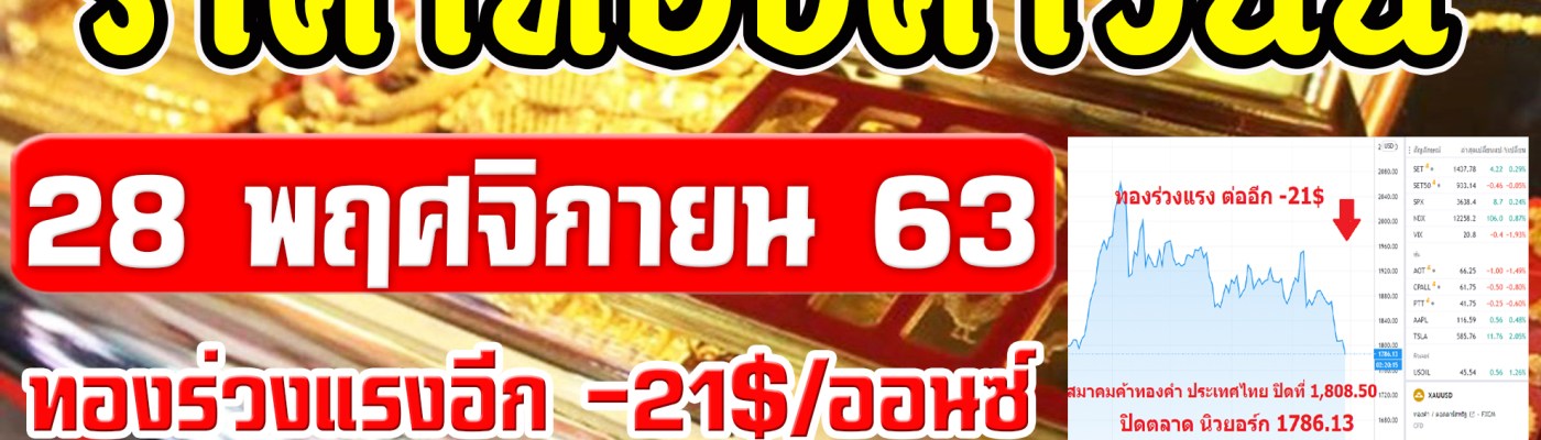 ราคาทองคำวันนี้ 28/11/63 ราคาทองวันนี้ 28พฤศจิกายน63 วิเคราะห์ทอง ทองร่วงแรงอีก 21$ รวม พ.ย. -1800บ.