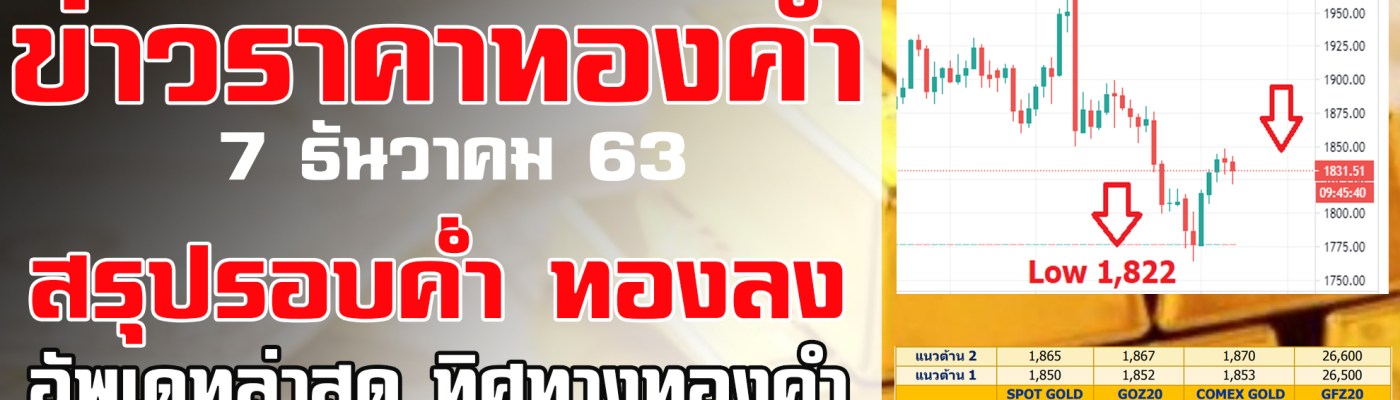 ราคาทองวันนี้ 7/12/63 (สรุปรอบค่ำ) ทองลง ครั้งที่5 ราคาทองคำวันนี้ 7ธันวาคม63 วิเคราะห์ราคาทองคำ