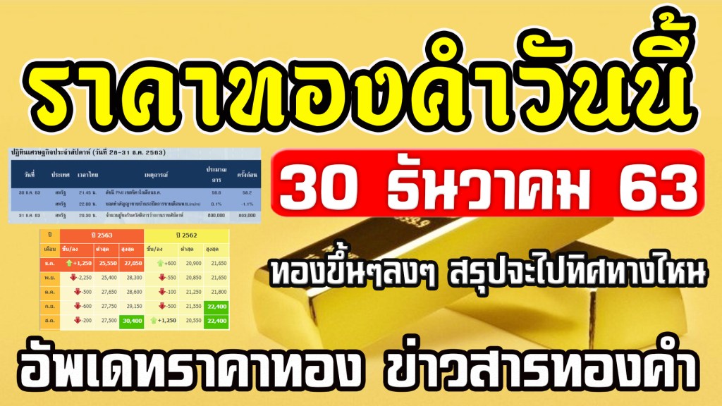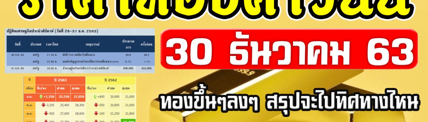 ราคาทองวันนี้ 30/12/63 ราคาทองคำวันนี้ 30ธันวาคม63 ราคาทองล่าสุด แนวโน้มราคาทองวันนี้ 30ธ.ค.63