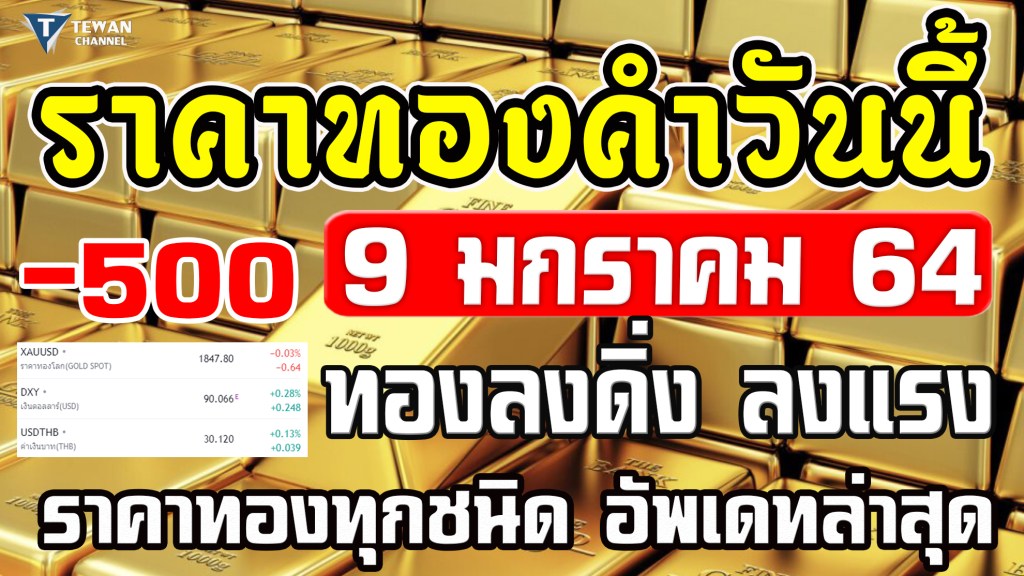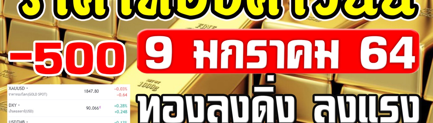 ราคาทองวันนี้ 9/01/64 ทองลงดิ่ง -500 ครั้งที่ 1 ราคาทองคำวันนี้ 9มกราคม64 ราคาทองล่าสุด
