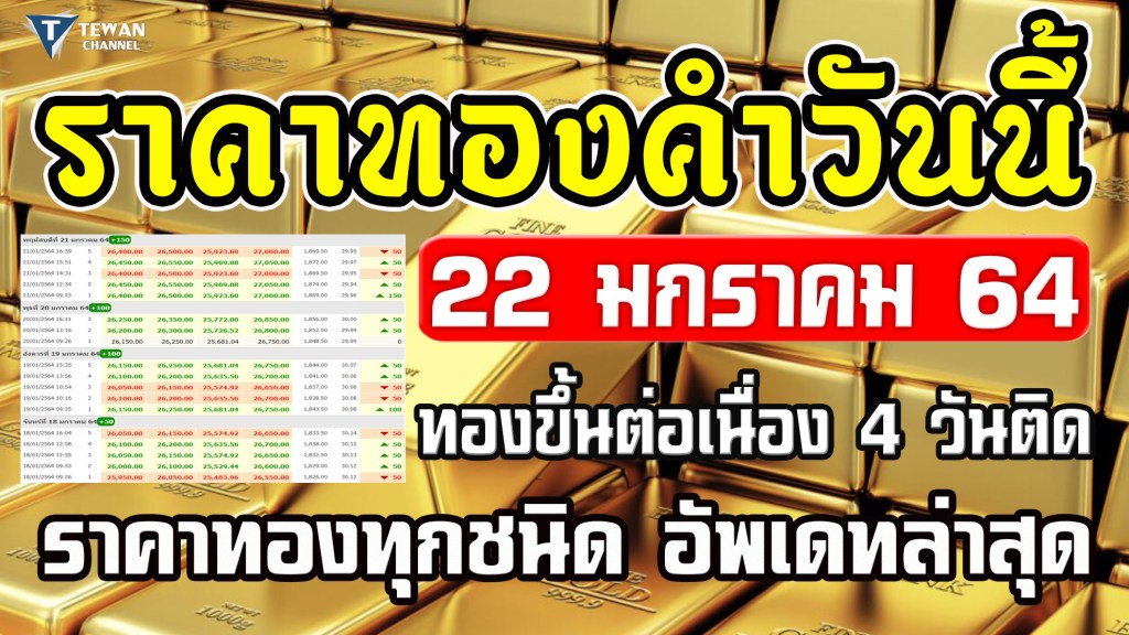 ราคาทองวันนี้ 22/01/64 ราคาทองคำวันนี้ 22มกราคม64 ราคาทองล่าสุด 22ม.ค.64