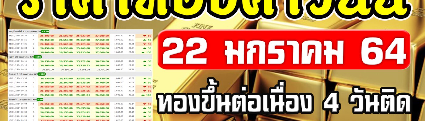 ราคาทองวันนี้ 22/01/64 ราคาทองคำวันนี้ 22มกราคม64 ราคาทองล่าสุด 22ม.ค.64